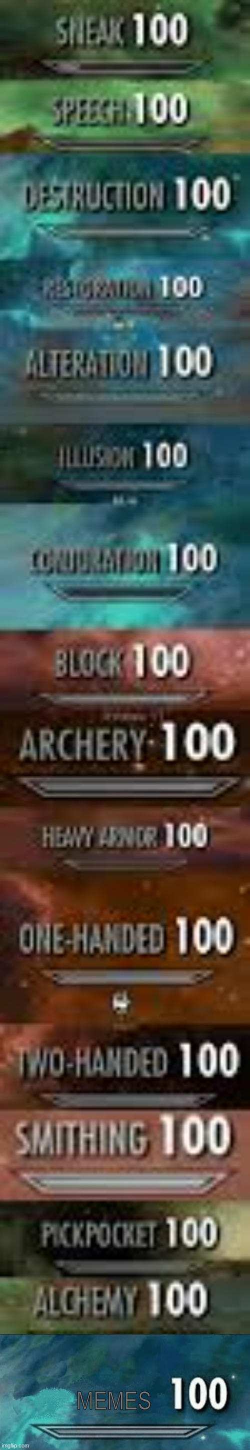 Sneak 100 Meme - Skyrim 100 Meme Template